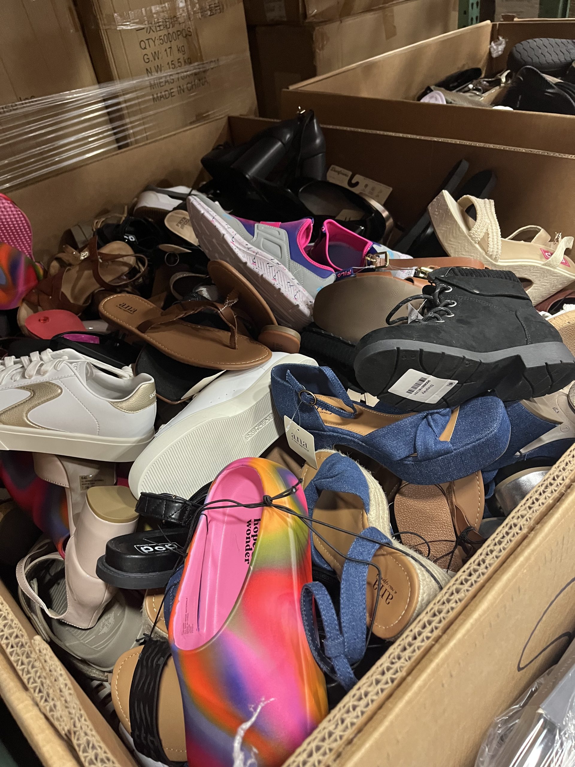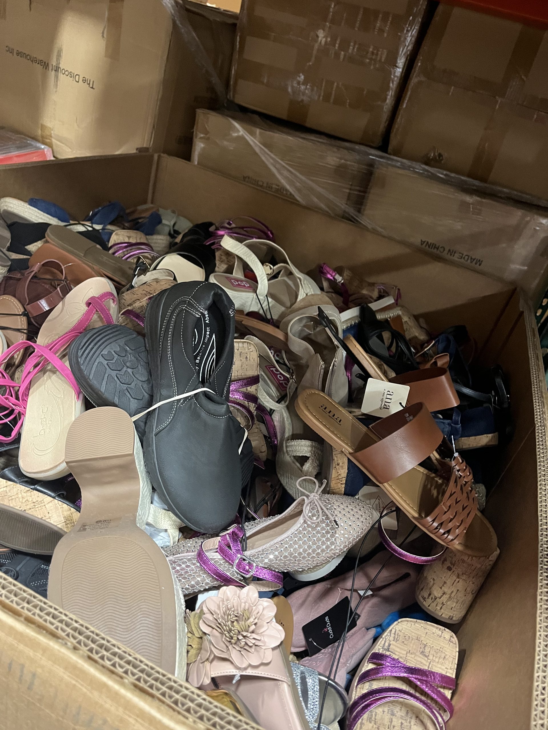 Gran selección de calzado para hombres, mujeres y niños. Los palés pueden incluir devoluciones de clientes y mercancía de excedente. Pueden contener una mezcla de calzado deportivo, zapatos de vestir, calzado casual, tenis, sandalias, botas de trabajo y más. F.O.B. Florida.