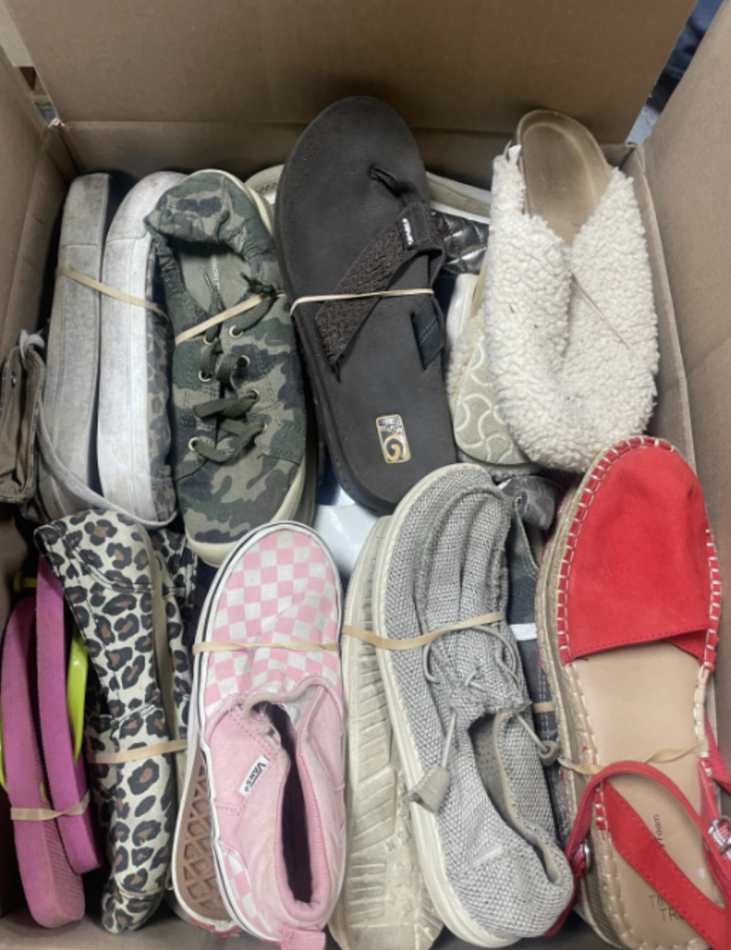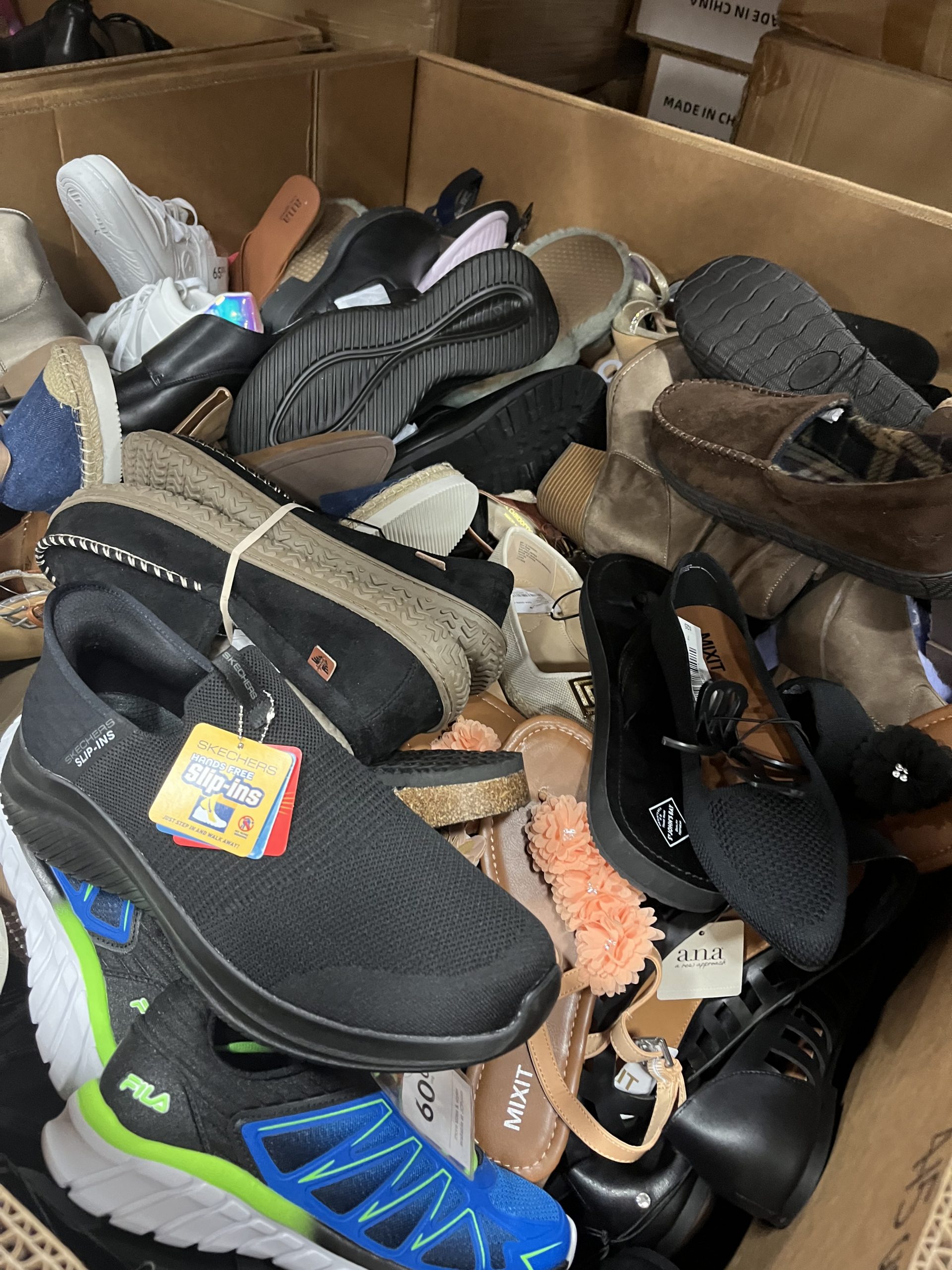 Abastécete con una gran variedad de zapatos para hombres, mujeres y niños — perfectos para revendedores y tiendas de descuento. Cada palé puede incluir una mezcla de: