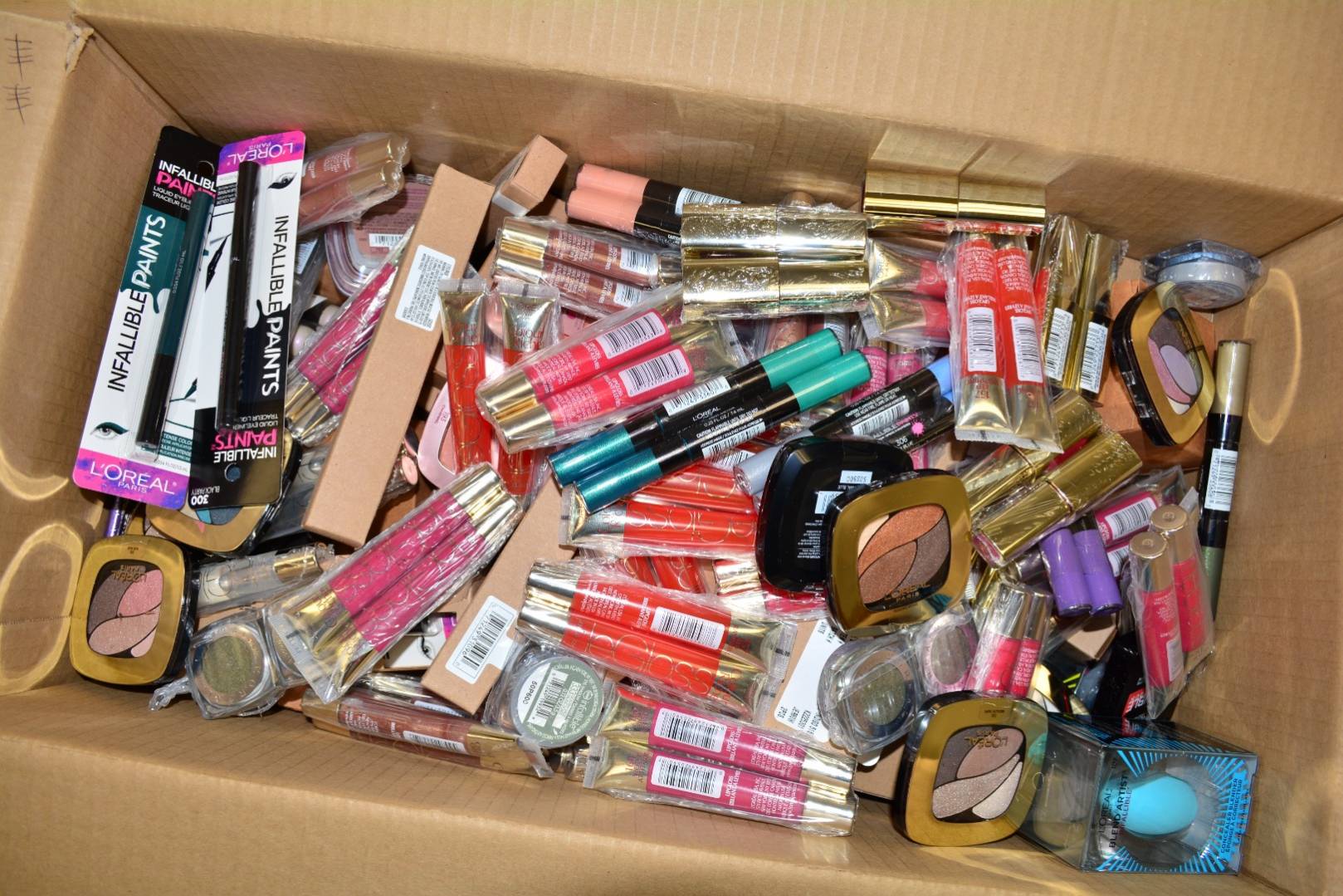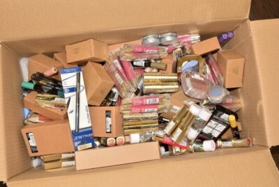 Toda la mercancía es nueva y proviene de excedentes. Puede incluir una variedad de productos como: labiales, delineadores de labios, brillos labiales, tratamientos para labios, máscaras, sombras de ojos, delineadores, esmaltes y tratamientos de uñas, rubor, base, polvos, correctores, desmaquillantes, limpiadores y tónicos, productos para el cuidado de ojos, anti-edad, hidratantes y más. Precio súper bajo.