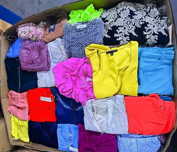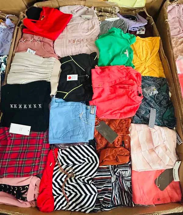 Toda la ropa es nueva y surtida para mujeres. Puede incluir una gran selección de artículos como: pantalones, camisas, blusas, denim, bodysuits, crop tops, tank tops, chaquetas, shorts, jumpsuits, ropa cómoda, rompers, vestidos y mucho más. F.O.B. Florida.