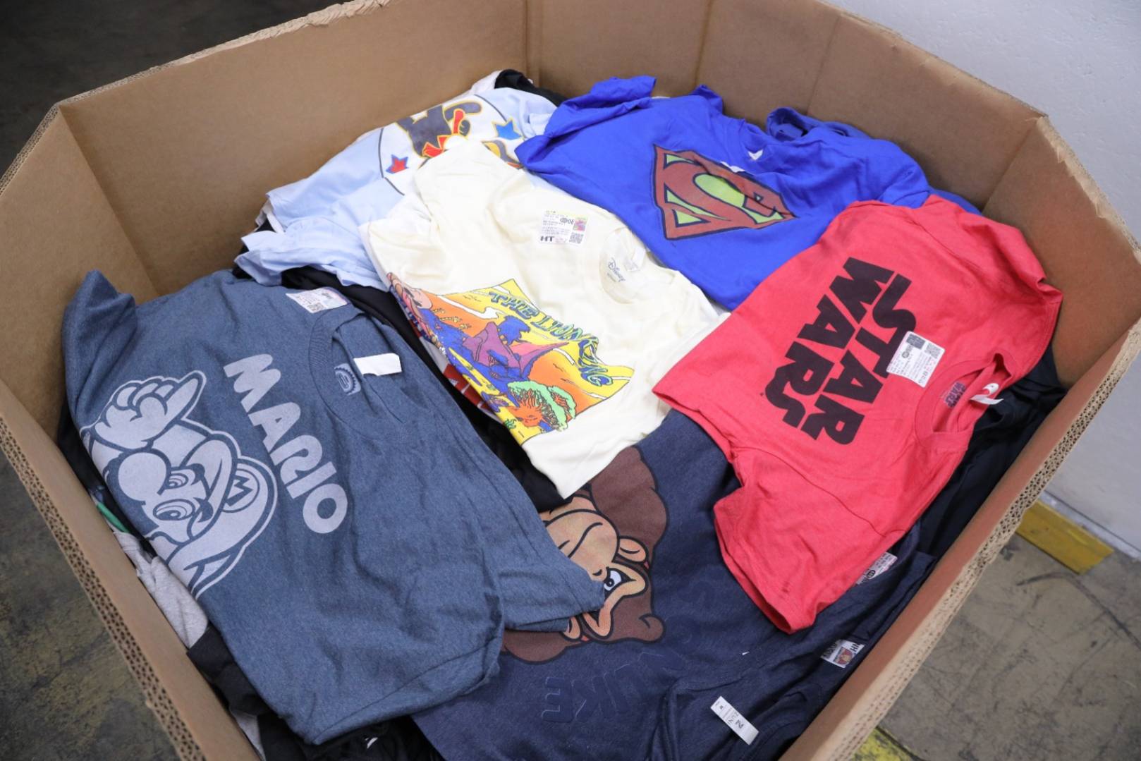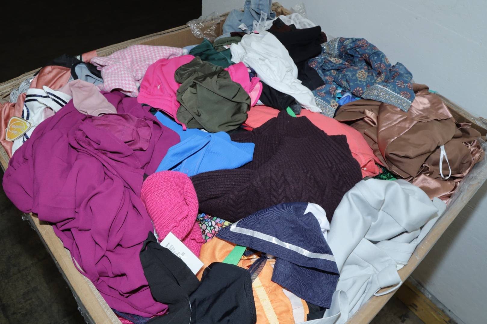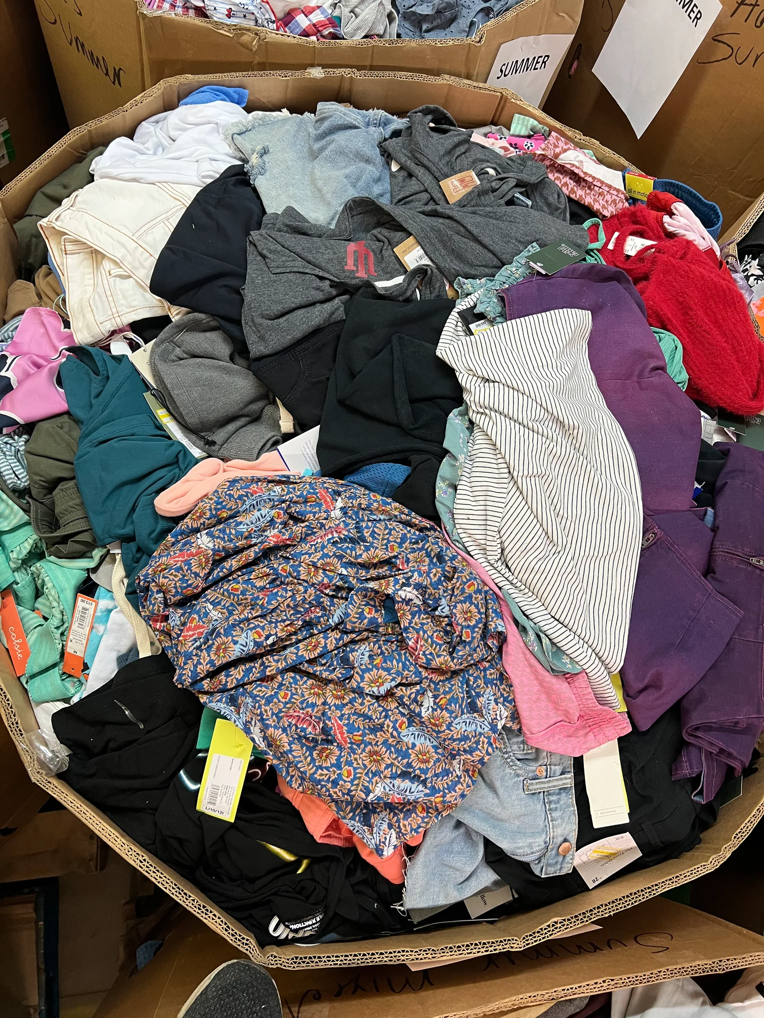 Ropa completamente nueva para hombres, mujeres y niños. El lote puede incluir una gran selección de camisas, pantalones, chaquetas, blusas, denim, faldas y más. F.O.B. Florida.