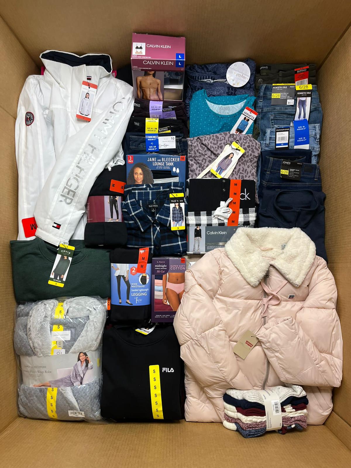 Abastécete con una selección premium de moda para mujer, incluyendo jeans, ropa deportiva, conjuntos casuales, ropa elegante y pijamas de las mejores marcas de diseñador. Los contenedores pueden incluir productos de Kensie, Kirkland Signature, Lazy Pants, Lemon, Levi’s, Lucky Brand, Puma, Nike, Nautica, Western Chief y más.