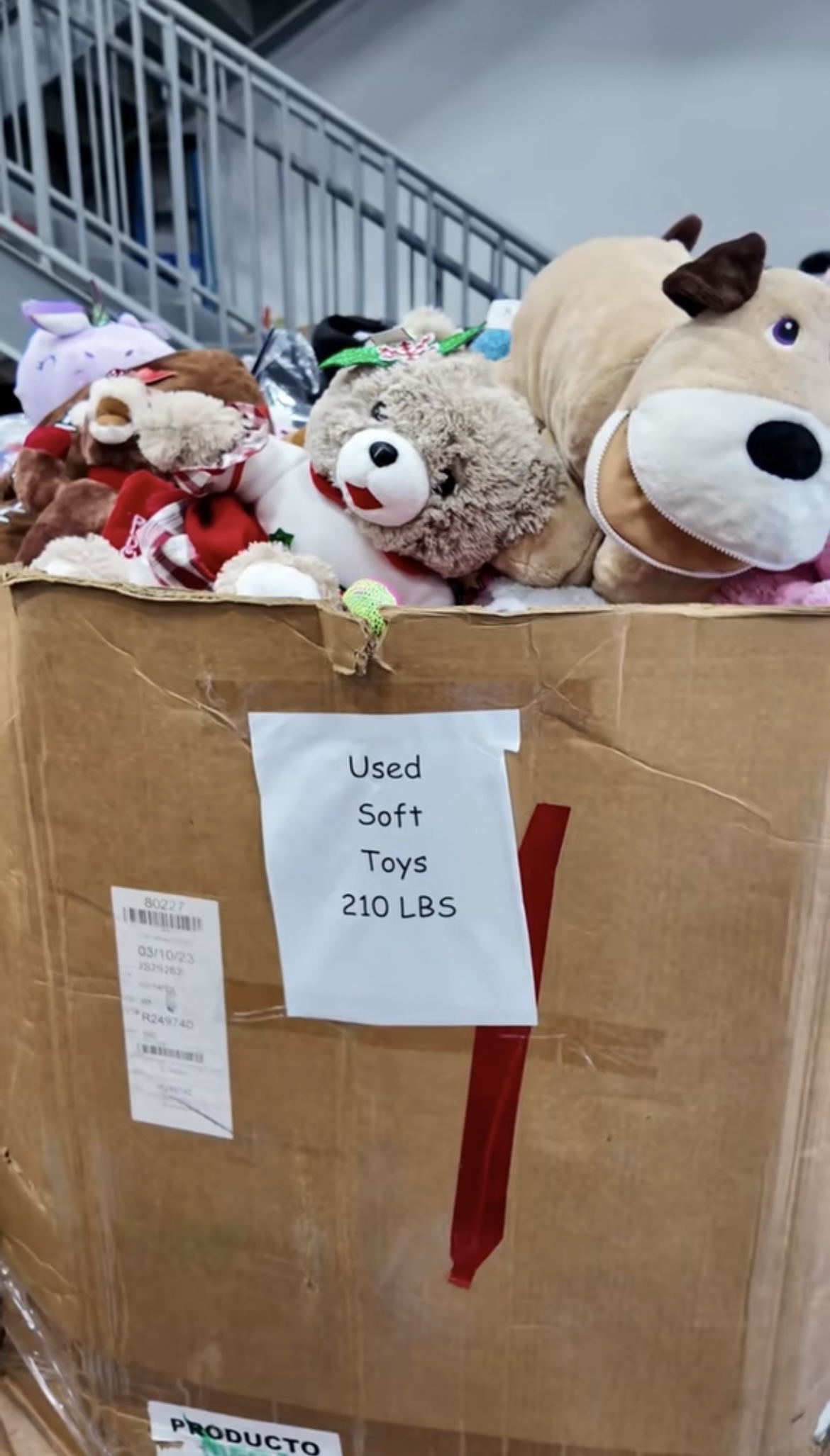 Obtén una surtida variedad de juguetes de peluche usados, empacados en sacos tipo cap sack para facilitar su manejo y reventa. Cada contenedor contiene aproximadamente 22,000 libras de juguetes, con 128+ sacos por carga.