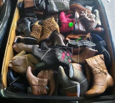 Gran selección de calzado para hombres, mujeres y niños. Los lotes pueden incluir una mezcla de calzado deportivo, zapatos de vestir, calzado casual, tenis, sandalias, botas de trabajo y más. Las marcas pueden incluir Jessica Simpson, Lucky Brand, Steve Madden, Vince Camuto, Marc Fisher, Birkenstock, Crocs, entre otras.